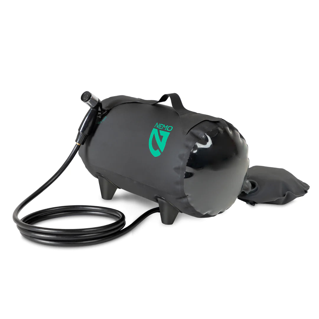 The award-winning Helio portable pressurized shower and sprayer rests on the ground and provides the pressure you need to wash hair, do the dishes, rinse off gear, water your plants, or wash the dog.
